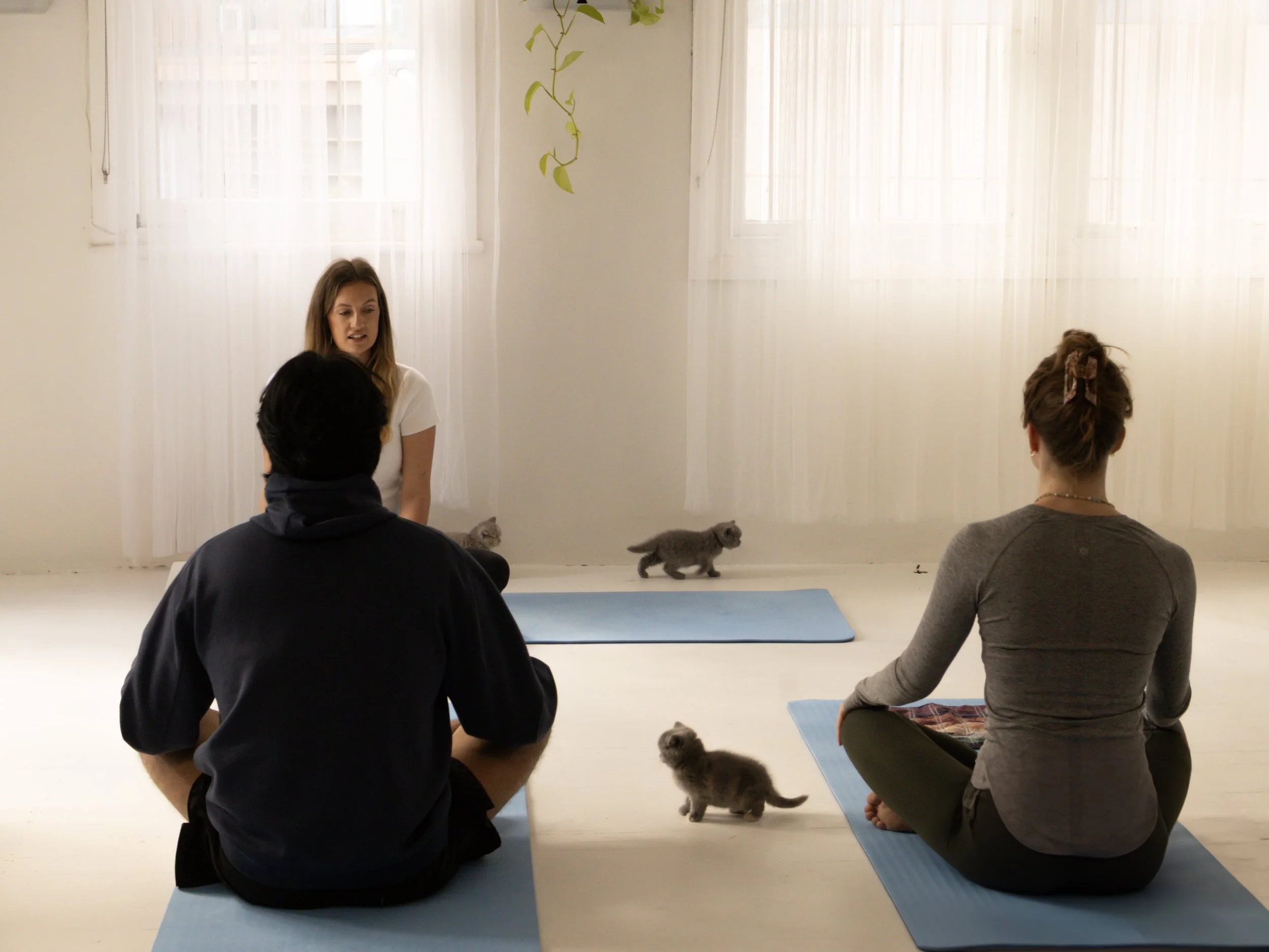That’s when the idea struck — what if we could share that joy more widely? What if we combined the calm of yoga with the comfort of kitties?